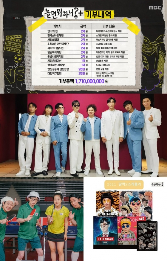 '놀면 뭐하니?' 제작진은 2일 "새해에 좋은 소식을 전할 수 있어 기쁘다. '놀면 뭐하니?' 제작진 및 출연자들의 뜻에 따라 도움이 필요한 11곳의 단체에 기부금을 전달한다"고 밝혔다.