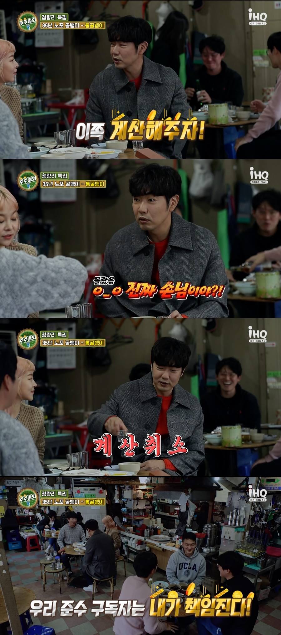 그러던 중 옆 테이블에서 같이 술을 주문하자 이종혁은 "같이 계산해 주세요"라며 통 큰 모습을 보였고, 놀란 옆 테이블의 손님을 향해 "버릇이에요"라며 농담도 던졌다.