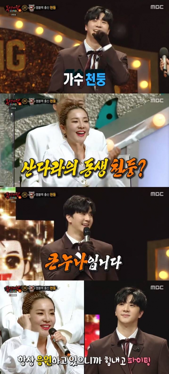 그룹 엠블랙 출신의 싱어송라이터이터 천둥이 '복면가왕'에 출연, 누나인 그룹 2NE1 출신 산다라박과 애틋한 남매애를 자랑했다.