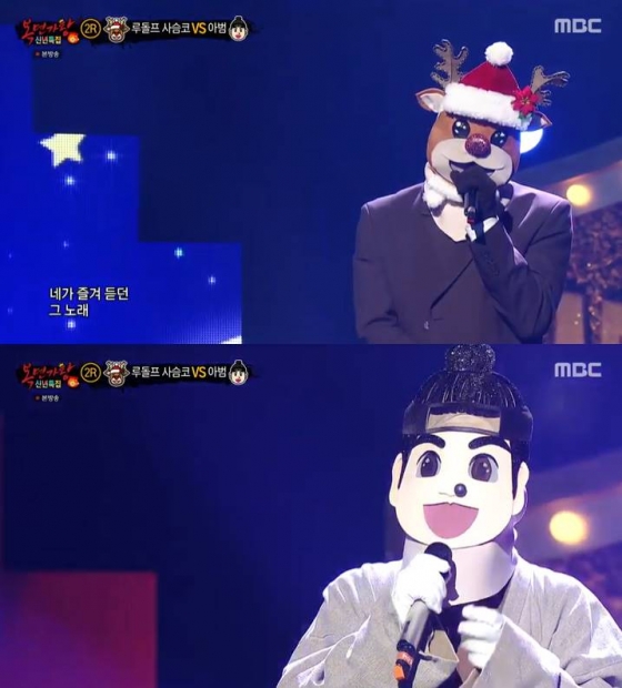 2라운드 첫 번째 무대로 루돌프 사슴코'와 '아범'이 등장했다. '루돌프 사슴코'는 김건모의 '잠못 드는 밤 비는 내리고'를, '아범'은 한영애의 '누구없소'를 열창했다.