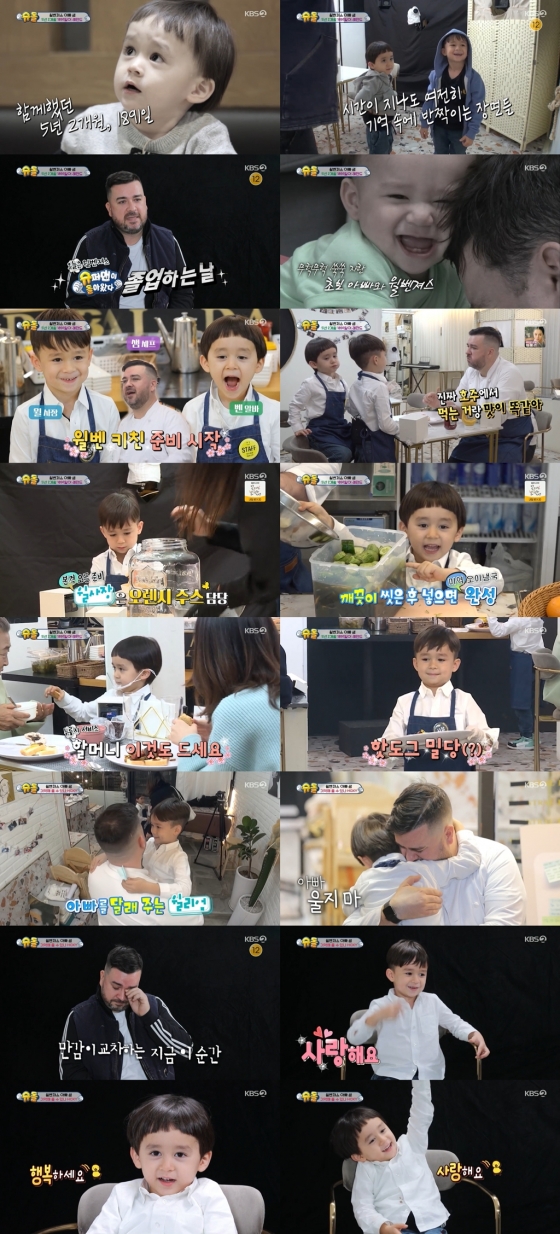 대한 호주인 샘 아빠가 준비한 호주식 핫도그부터, 벤틀리의 최애 음식인 채소잼을 바른 뻥튀기, 벤틀리가 오이를 잘라서 만든 오이냉국, 윌리엄이 직접 짠 오렌지 주스까지 근사한 해밍턴즈 정식이 완성됐다. 손님으로 찾아온 팬들은 음식에 담긴 정성과 사랑에 감탄했다. 이에 더해 아이들의 깜찍한 손님 응대가 윌벤키친을 웃음으로 물들였다.