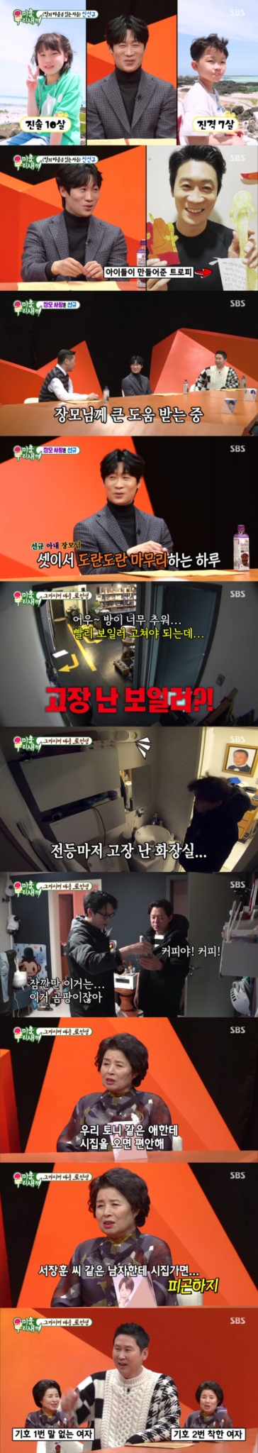 토니안은 나이만 먹었을 뿐 4년 전과 똑같이 대충 사는 집안 모습이 공개돼 한숨을 불러일으켰다. 고장이 난 보일러를 고치지 않고 겨울 패딩을 입은 채 잠을 자는가 하면, 불이 들어오지 않아 어두운 화장실에서 면도를 하고 곰팡이가 낀 커피를 방치, 유통기한 지난 음식이 냉장고에 가득했다. 이에 토니母는 한숨을 쉬면서도 "우리 토니 같은 애한테 시집오면 편해" "서장훈 씨 같은 남자한테 시집가면 피곤하지"라면서 아들 사랑 면모를 보였다. 또한 자신의 젊었을 때 별명이 "착한 여자" "말 없는 여자"라고 말해 폭탄 웃음을 선사했다.