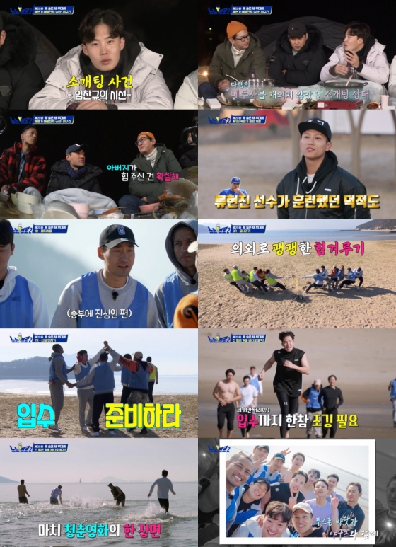 한편 이날 방송에서는 야구 선수들의 입담뿐만 아니라 '코리안 몬스터' 류현진 선수가 훈련했던 장소에서 게임을 즐기는 브로들의 모습도 담겨 색다른 재미를 선사했다. 용택 팀과 수창 팀으로 나뉜 브로들은 머리끝까지 짜릿해지는 겨울 바다 입수를 걸고 승부욕을 불태웠다.