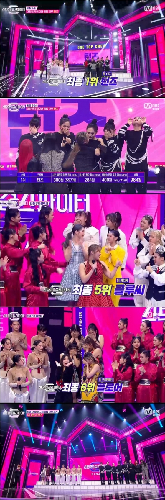 4일 오후 방송된 Mnet 예능프로그램 '스트릿댄스 걸스 파이터'에서는 파이널 순위가 공개됐다.