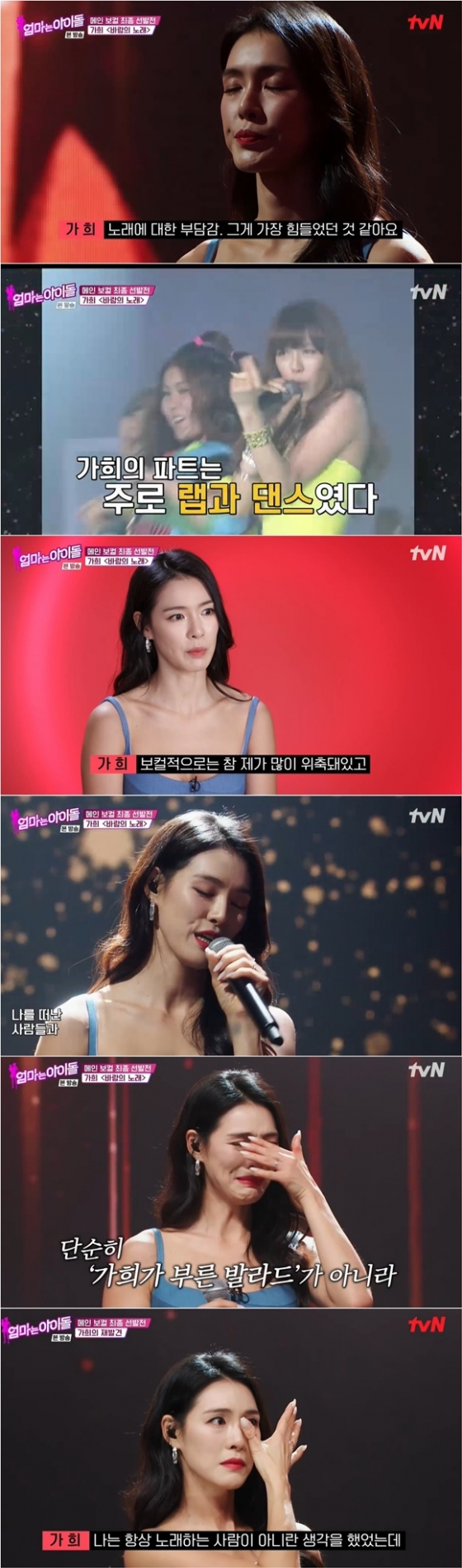 '엄마는 아이돌'에서 전 에프터스쿨 멤버 가희가 보컬 최종 선발전에서 왈칵 눈물을 쏟아냈다.