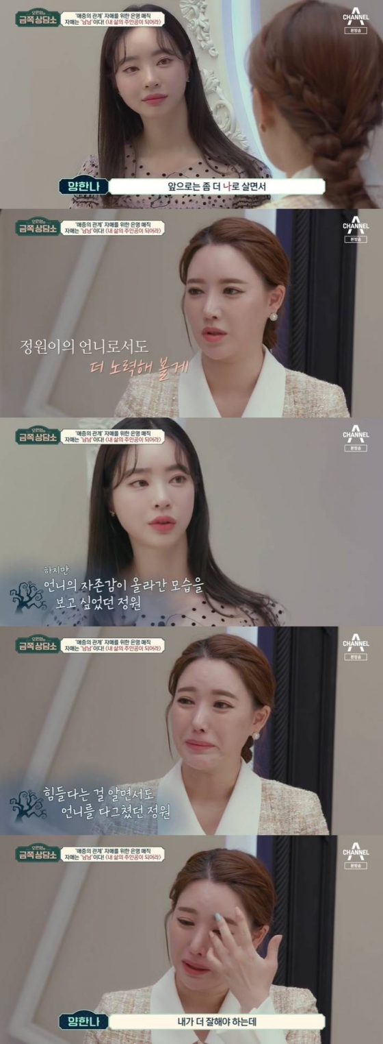 오은영은 "한나 씨가 무의식적으로 열등감, 질투심, 경쟁심을 갖고 있지만 스스로 용납하지 못했던 거다. 동생을 아끼는 헌신적인 언니로 평가 받을 때 자신의 존재의 의미가 된 것 같다"고 했다. 양한나는 "8년 동안 일했지만 이게 안 맞나, 내 존재감이 뭔지 털어놓고 싶었다"고 속마음을 밝혔다. 오은영은 "양한나로서 꿋꿋하게 홀로서기를 시작해 봐라. 내 삶의 주인공이 돼라"고 조언했다.
