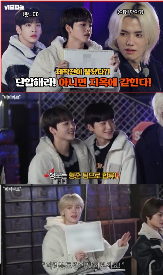 이날 '비티 파크'는 온몸이 밧줄에 묶인 채 지옥문 앞에 앉아있는 크래비티의 모습으로 시작됐다. 제작진은 지옥에 가지 않으려면 지옥문을 닫기 위한 미션을 해야 한다고 말하며 이어질 지옥 특집의 서막을 알렸다.