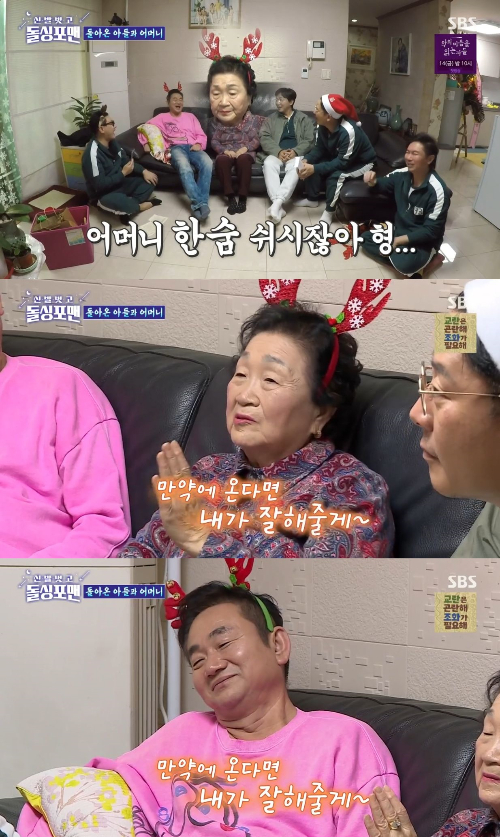 11일 오후 방송된 SBS '신발 벗고 돌싱포맨'(이하 '돌싱포맨')에서는 돌싱포맨(탁재훈, 이상민, 임원희, 김준호)이 돌싱 형제 배도환의 집에 방문하는 모습이 담겼다. 이날 방송에서 배도환의 어머니 한웅자는 배도환이 맞선이 들어와도 잘 안되는 이유에 대해 털어놓았다.
