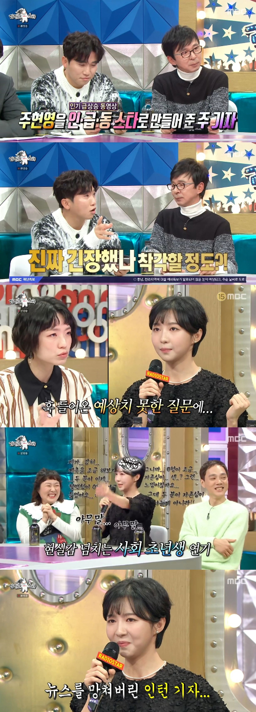 '라디오스타'에서 주현영이 화제의 영상 속 인물 '주기자'를 선보였다.