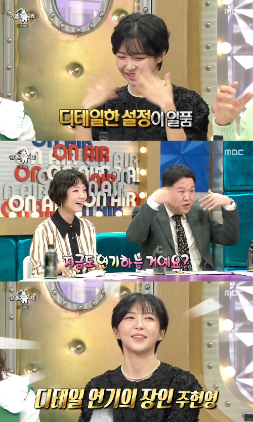 안영미의 돌발 질문에 주현영은 자신의 캐릭터를 완벽하게 소화한 듯 '당황함','어리숙함'을 멋들어지게 선보이며 보는 이들도 긴장하게 만드는 연기력으로 주변을 몰입시켰다. 특히 터지려는 울음을 억지로 참으려는 제스처와 "미치겠다"고 혼잣말을 하는 등 디테일한 표현력에 모두 감탄했다.