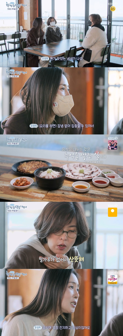 이에 이선희는 문어 전을 포함해 숙회와 문어 국밥을 주문했다. 음식을 기다리는 동안 이선희는 문정희에게 "요리 잘해?"라고 물었고, 문정희는 "요리하는 거 좋아한다. 집에서는 평범하게 밥, 국, 찌개 이런 거 만든다. 엄마가 요리를 너무 좋아해서 엄마를 따라 하다 보니 엄마표 음식을 만들게 됐다"라며 설명했다.