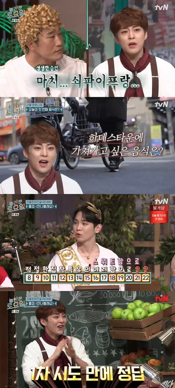 15일 오후 방송된 tvN 예능 프로그램 '놀라운 토요일'에는 배우 강홍석과 엑소 시우민이 출연했다.