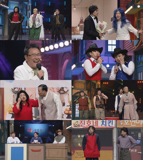 '결혼해두목'에서는 결혼하고픈 형님 이국주와 형님의 연인을 물색하는 신규진, 정호철의 고군분투가 공개된다. '개빡로맨스' 코너에서 강재준, 이은지는 꽁냥꽁냥 커플을 연기하며, 김용명, 이은형이 이들의 연애를 질투하는 유령으로 변신해 유쾌한 훼방 작전을 이어간다.