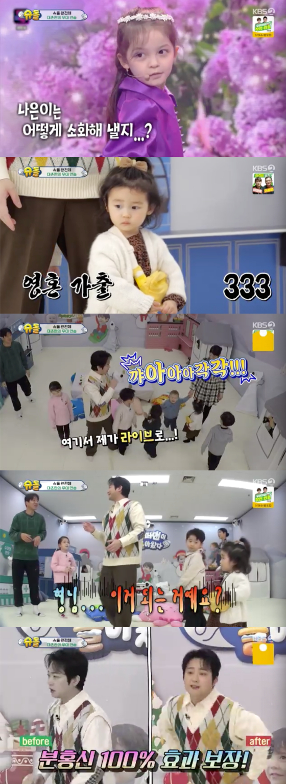 연예대상 당일 아이들은 준비해온 대로 완벽하진 않지만 행복한 미소를 자아내는 무대를 선보였다. 특히 보라 요정으로 변신한 나은이의 활약과 무대 뒤에서 계속해서 외발 자전거를 타는 사유리의 모습이 시선을 끌었다. 수상 소감은 나은이와 하준이가 차지했다. 나은이와 하준이는 각각 마이크를 잡고 "사랑해주셔서 감사합니다"와 "사랑해주세요"를 외쳐 귀여움을 자아냈다.