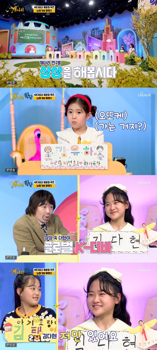 이날 방송에서 붐은 "미래로 가보자"며 상상하는 시간을 가졌다. 붐은 김다현에게 "30살의 다현이는 뭐 하고 있냐"고 물었다. 김다현은 "외국에서 콘서트를 하고 있다"라며 상상의 나래를 펼쳤다. 붐은 "이야, 디바"라며 맞장구쳤다. 이어 붐은 "누구랑 함께 있냐"고 했고, 김태연은 냉큼 "태연이"라고 받아쳤다. 하지만 김다현은 "저 혼자요"라며 꿋꿋하게 말해 웃음을 자아냈다.