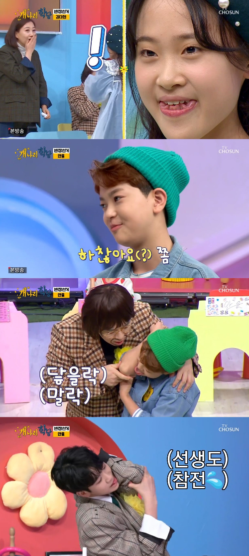 김유하는 "정동원 선생님은 키도 크고 얼굴도 잘생기고 노래도 잘한다"고 폭풍 칭찬을 이었다. 개인기로 '내일은 국민가수'에서 김영흠의 표정을 완벽 재현해냈다. 임서원은 "얜 귀여워서 뽑을 거 같아"라며 까르르 웃었다.