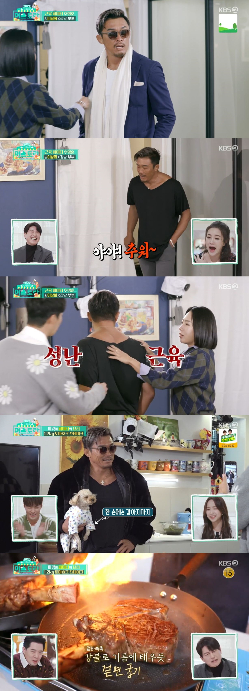 추성훈이 아내 야노시호의 옷을 입고 본격 요리에 나섰다. 요리 도중 추성훈이 추워하자, 이상화는 강남의 퍼자켓을 가져다줬다. 추성훈이 강남의 옷을 찰떡 소화해냈다. 이에 이상화는 "잘 어울린다"고 감탄했다. 추성훈은 곧바로 선글라스를 끼며 포즈를 취했다. 강남도 맞장구치며 기념사진도 찍어줬다. 추성훈은 "이거 가져가도 돼"라고 물으며 웃음을 자아냈다.