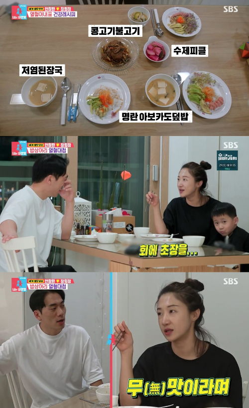 이어 안창환이 아들 다올이와 함께 육아 전쟁을 치르는 동안, 장희정은 저녁밥을 준비했다. 장희정은 레몬 오일과 블랙페퍼 오일을 넣는 등 건강식에 치중해 천연재료만을 넣고 상을 차렸다. 그때 안창환은 "여보 근데 나 소스 좀만 더 뿌려도 돼? 맛있는데…."라고 말했다. 장희정은 "한 숟가락만. 내가 만든 간장 넣어"라고 했다.