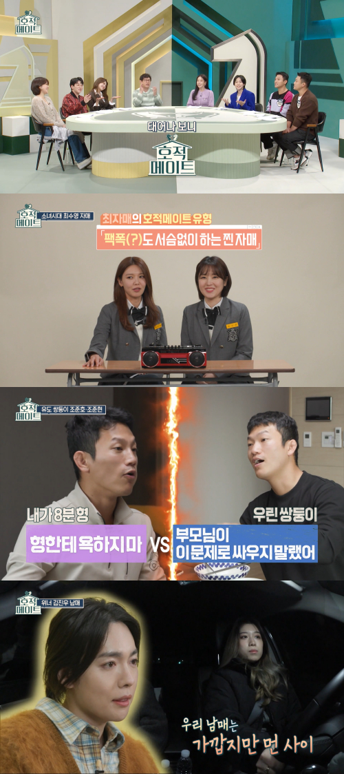 25일 방송되는 '호적메이트'에서는 누구보다 어색한(?) 위너 김진우 남매의 감성 캠핑 여행과 국가대표 출신 유도 쌍둥이 조준호&조준현 형제의 부모님 앞에서도 끝없는 티격태격 일상, 트롯바비 홍지윤의 동생 홍주현을 위한 녹음실 출동기가 공개될 예정이다.