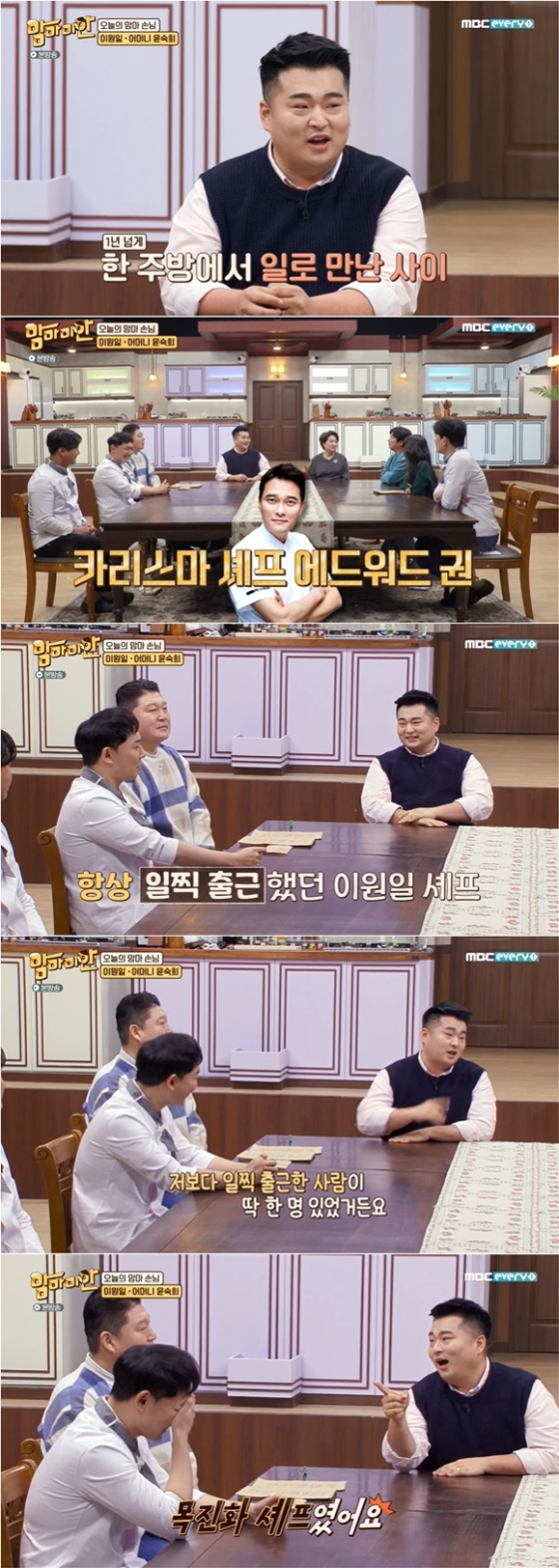 이원일은 "우리는 한 스승 밑에서 배웠다. 에드워드 권 셰프 님이다. 1년 넘게 같은 주방 안에서 이 거리에서 같이 근무하던 사람이다"라고 말했다.