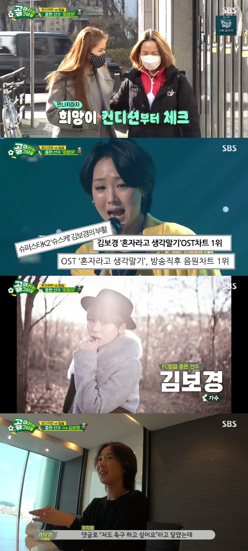이어 채리나는 희망이를 만났다. FC 탑걸의 충원 선수 희망이는 다름 아닌 OST의 여왕 김보경이었다. 김보경은 인터뷰를 통해 "취미 풋살을 1년 정도 했다. 축구할 땐 잡생각이 전부 다 사라지니까 그 점이 좋은 거 같다. 공 때릴 때는 스트레스도 많이 풀린다"며 기대감을 모았다.