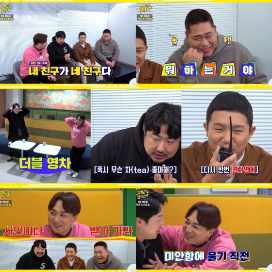 황제성은 강재준의 요청대로 "(볼 꼬집으며) 어이구 귀여운 놈! 해줄게"라고 말하면서도 미안함에 울기 직전의 표정이 됐다. 민망함 속에 황제성은 다시 '영차영차' 댄스를 펼쳤고, 문세윤의 친구도 이에 함께하며 짧은 순간에도 쌓인 진한 우정을 자랑했다.