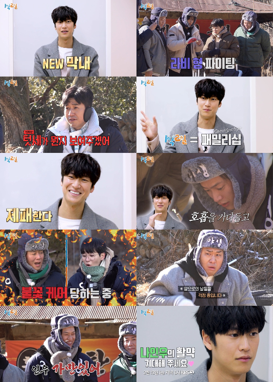 또한 '패기 막내' 나인우는 복불복 게임에 대한 남다른 자신감을 보였으나 현장에서는 실패를 거듭하는가 하면, 평정심을 잃은 불안한 모습으로 형들의 걱정을 자아내 폭소를 유발한다. 그뿐만 아니라 "제가 제일 똑똑한 캐릭터일 것 같다. 형들을 케어하고 책임지겠다"라는 당찬 선언과 달리, 2% 모자란 활약으로 형들에게 되레 '불꽃 케어'를 받는 전세 역전 상황이 펼쳐지기도. 급기야 문세윤은 "인우야 가만히 있어"라며 나인우를 뜯어 말리기까지 해, 어디로 튈지 모르는 이들의 좌충우돌 케미스트리가 궁금해진다.