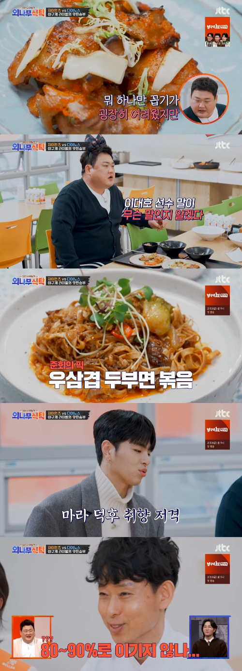 3일 오후 방송된 JTBC '외나무식탁'에서 김준현과 구준회는 NC 다이노스와 대결을 펼칠 롯데 자이언츠 식당에 방문하는 모습이 담겼다.