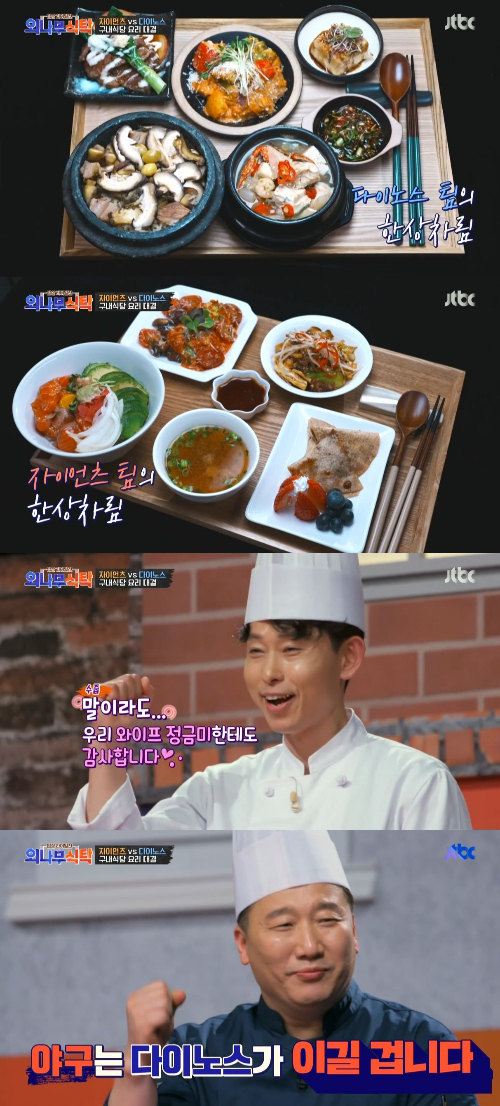3일 오후 방송된 JTBC '외나무식탁'에서 스포츠 구단 최강 선수 식당으로 손꼽히는 롯데 자이언츠와 NC 다이노스의 요리사들이 자존심을 건 맛 대결이 펼쳐졌다.