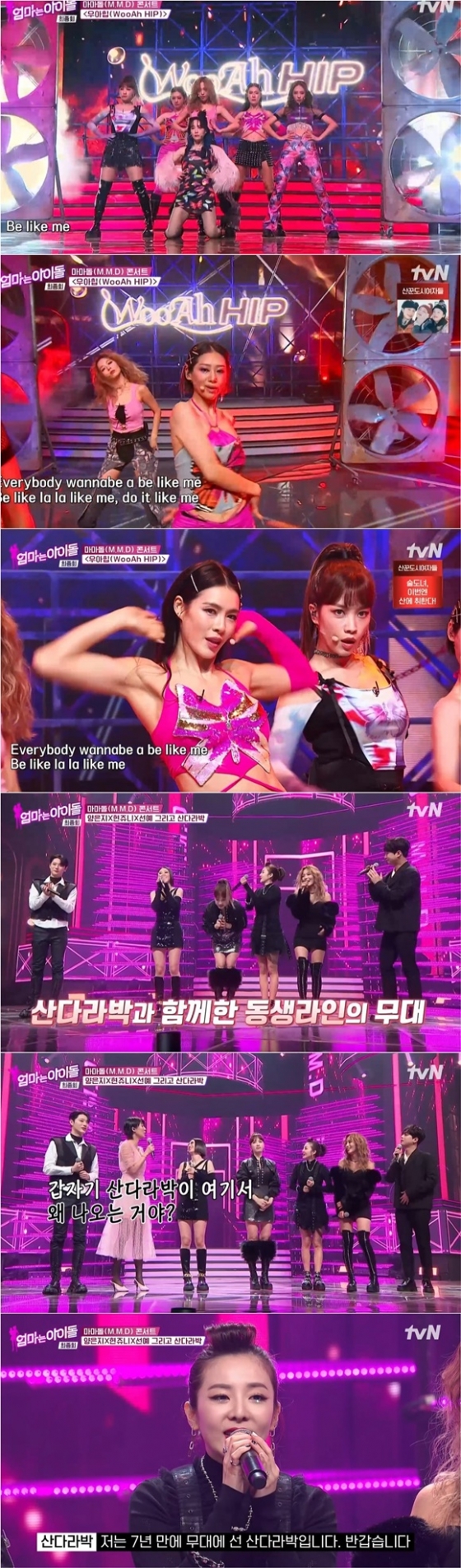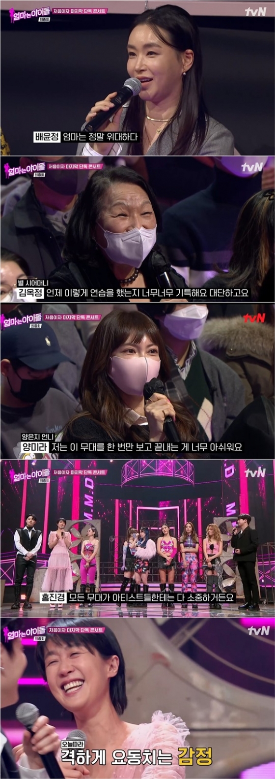 4일 오후 방송된 tvN 예능프로그램 '엄마는 아이돌'에서는 마마돌 멤버들(가희 박정아 별 양은지 현쥬니 선예)이 '엠카운트다운' 데뷔 무대에 이어 단독 콘서트를 개최하는 모습이 그려졌다.