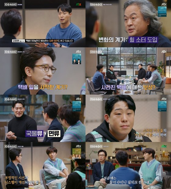 한편, '다수의 수다' 마지막 회에서는 우리 삶에 빼놓을 수 없는 필수노동자인 배달업 종사자들을 만나 수다를 떨었다. 택배 기사 금종명, 원성진과 배달 라이더 전성배, 박경학은 수입부터 준비해야하는 것들, 업무 환경 등을 솔직하게 말했다. 무엇보다 배달원을 향한 갑질 횡포와 교통 법규를 지키지 않는다는 인식에 대해 각자의 생각을 전해 보는 이들의 시선을 모았다.