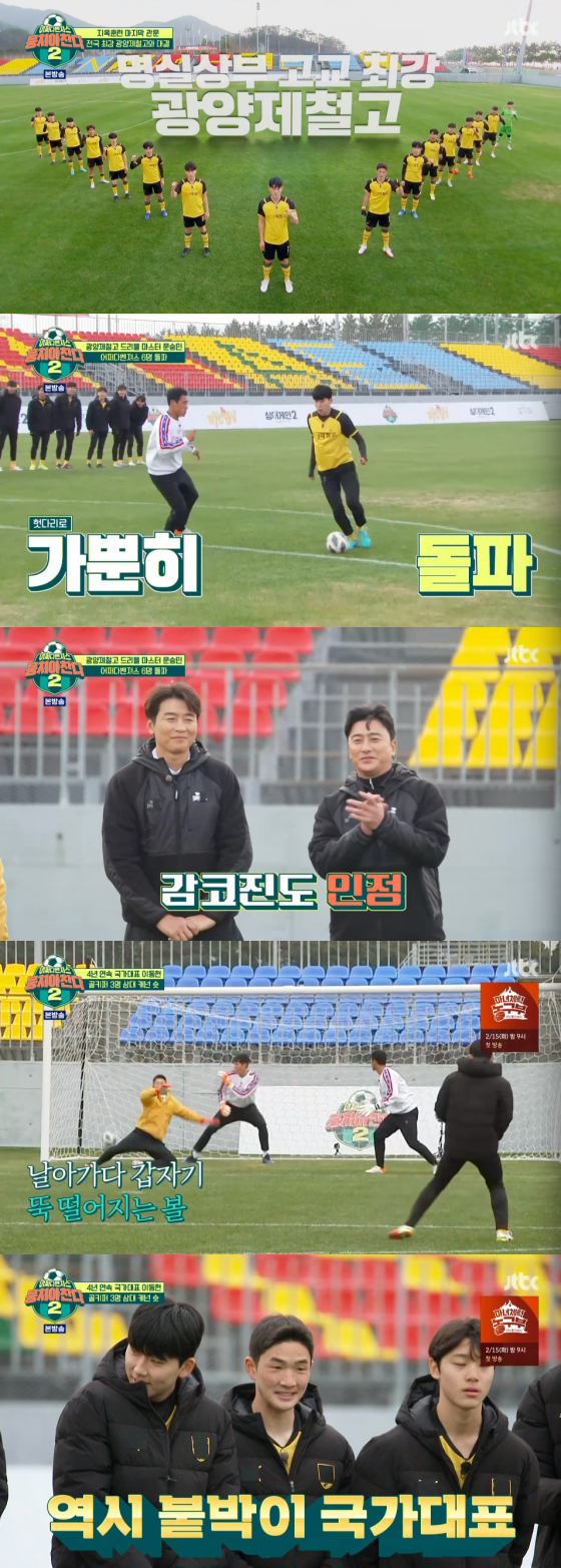 6일 방송된 JTBC 예능 프로그램 '뭉쳐야 찬다2'에서는 FC어쩌다벤져스가 전국 고교 축구대회 우승팀 광양제철고 축구부를 만났다.