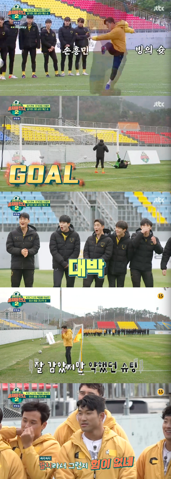 '뭉찬' 어쩌다벤져스가 광양제철고와 개인기 대결을 펼쳤다.