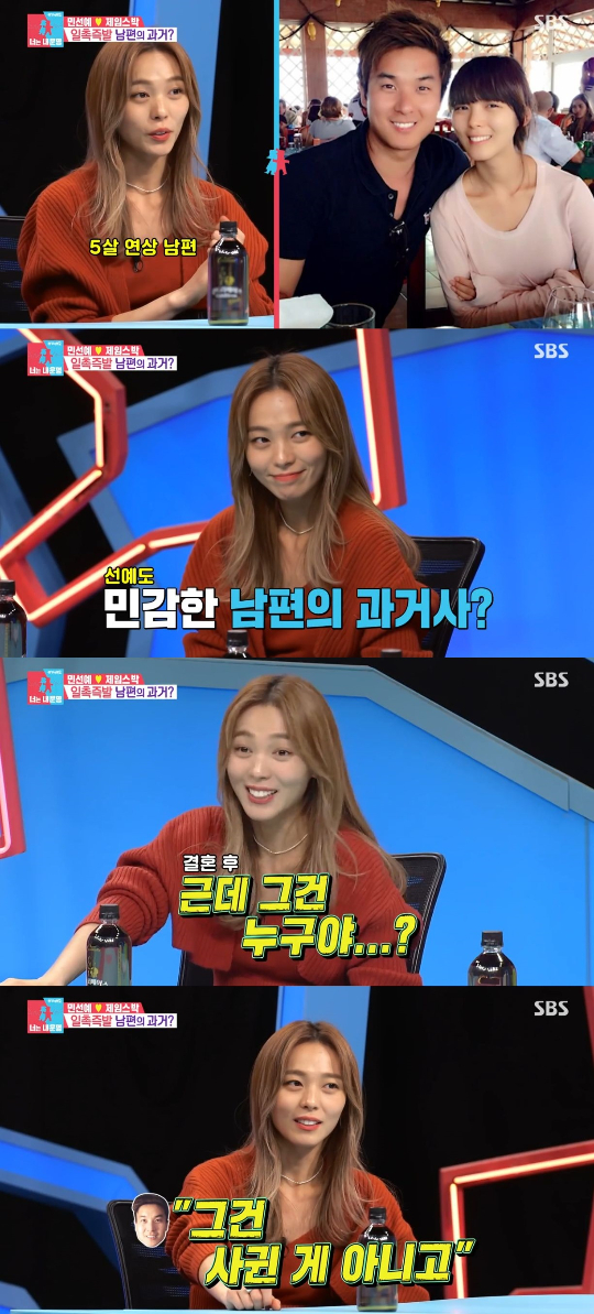 이날 방송에서 선예는 "남편이 저보다 5살 많다. 어쨌든 저보다 연애 경험이 많을 수 있겠죠. 다 대충 털어놨다고 생각했는데 지인들과 자리에서 대화하다가 '그건 누구야?'라는 물음이 드는 게 있었다. 그러자 남편이 '그거는 뭐 사귄 게 아니다'라고 하더라"며 웃었다.
