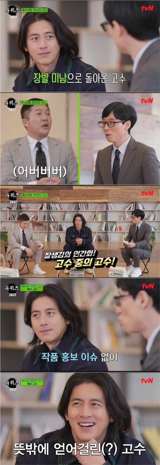 유재석이 "이 머리가 남자들의 로망이다. 테리우스 머리. 머리를 기른 이유가 있냐"라고 물었다. 고수는 "사실 작년에 준비하던 작품이 있었는데 좀 뒤로 밀리게 됐다. 그 이후로 머리에 신경을 안 써서 계속 길게 됐다"고 설명했다.