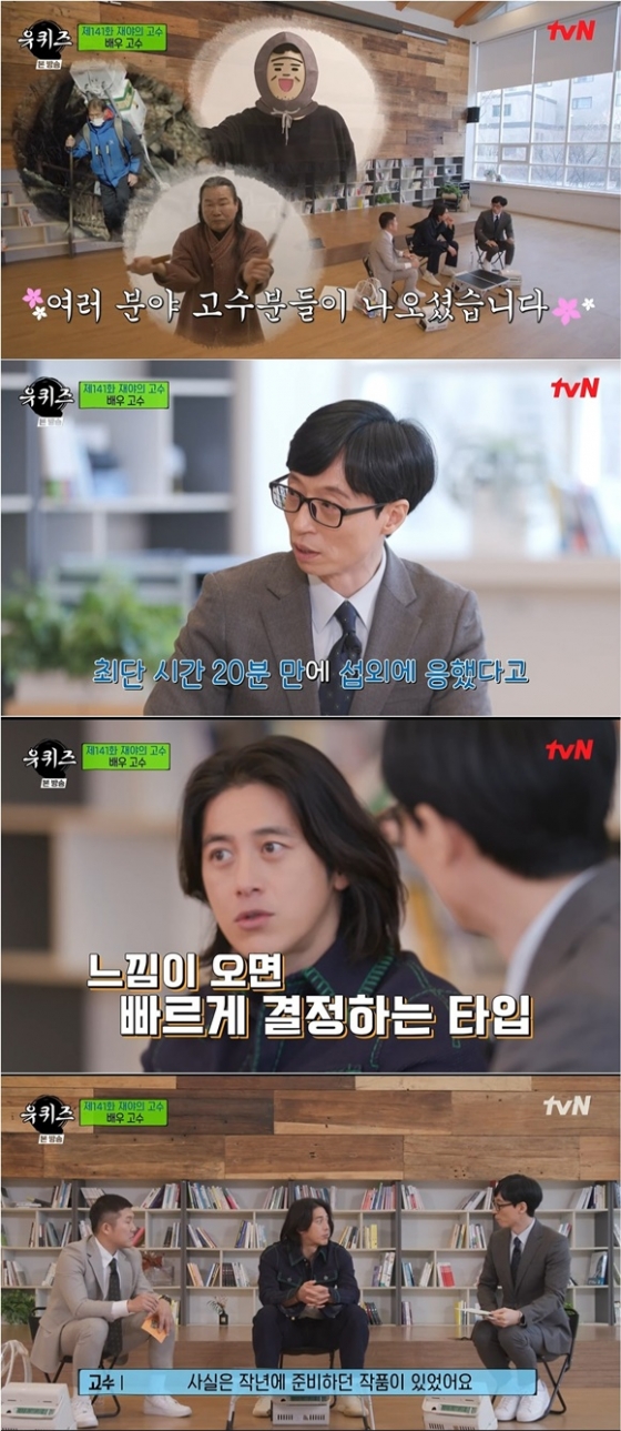 고수는 "작품도 그렇고 출연 선택하는데 오래 걸리는 편은 아니다. 느낌이 오면 바로 한다고 하는 편이다"라며 머리를 장발로 기른 이유 또한 밝혔다.