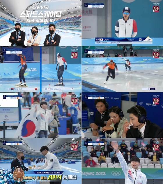 김민석 선수가 첫 메달 획득으로 답답했던 국민들의 속을 시원하게 씻어 준 순간 대한민국 빙속의 전설 이상화, 이강석 KBS 해설 위원은 기쁨의 눈물을 흘렸다. 지난 평창올림픽에서 아시아인 최초 남자 1500m 메달리스트였던 김민석은 이번 베이징에서도 동메달을 획득, 2회 연속 올림픽 메달의 쾌거를 달성했다.