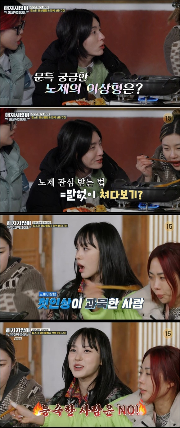 '해치지않아X스우파'에서 노제가 자신의 이상형으로 첫인상만 과묵한 사람을 꼽았다.