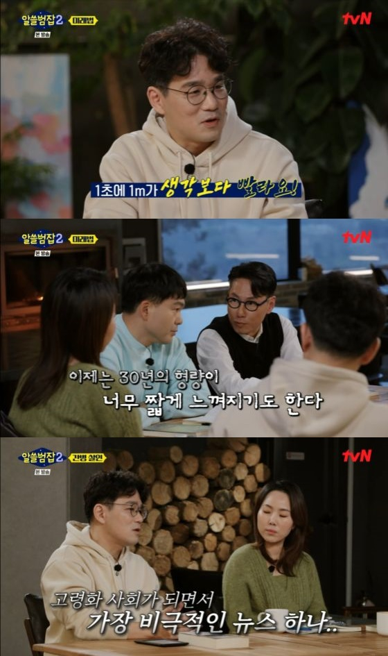 '알쓸범잡2'에서 장강명 작가가 고령화 사회에 맞춰 바뀌어야 할 법에 대해 말했다.