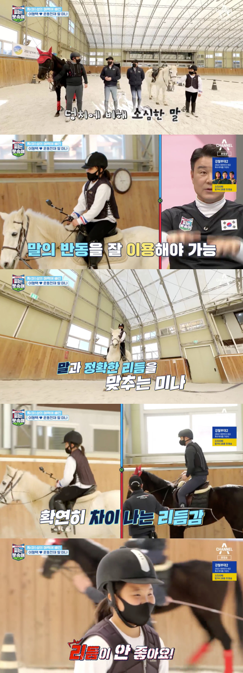 이형택은 미나와 달리 말과 엇박자로 움직이며 쉽게 적응하지 못했다. 이에 미나는 "리듬이 안 좋다"고 일침을 가하며 스튜디오를 웃음바다로 만들었다. 또한 미나는 "말이랑 많이 친해진 것 같고 텔레파시가 통한 것 같아서 기분이 좋았다"며 승마한 소감을 밝혔다.