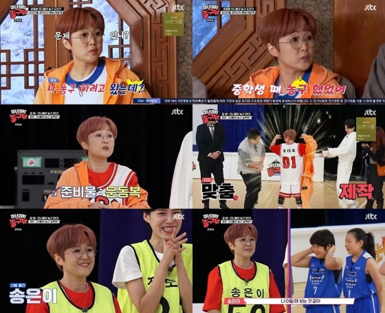 환영식 겸 몸풀기에 돌입한 송은이는 개성 넘치는 '농구 패션'으로 시선을 단번에 사로잡았다. 그는 "스태프들이 저한테 거는 기대가 큰 거 같다"라며 소속사 직원들이 특별 제작한 송대표 농구복을 자랑, 남다른 맞춤 제작 의상으로 '농구 어린이'의 당찬 각오를 어필했다.
