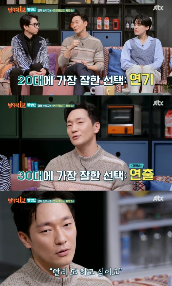 이어 손석구는 '언프레임드-재방송'을 7글자로 "가장 자랑스러운"이라고 말하며 훈훈함을 자아냈다. 그러면서 "20대에 가장 잘한 일은 연기를 한 것이고 30대에 잘한 것은 연출한 거다"면서 "올해 딱 40이 됐는데 빨리 또 하고 싶다"며 연출에 대한 의지를 밝혔다.