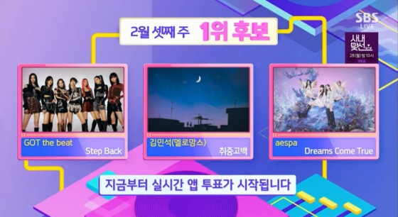 이날 1위 후보는 보아, 태연, 효연, 웬디, 슬기, 카리나, 윈터 등으로 구성된 갓더비트(GOT the beat)의 '스텝 백', 김민석의 '취중고백' 그리고 에스파의 '드림스 컴 트루'가 언급됐다.