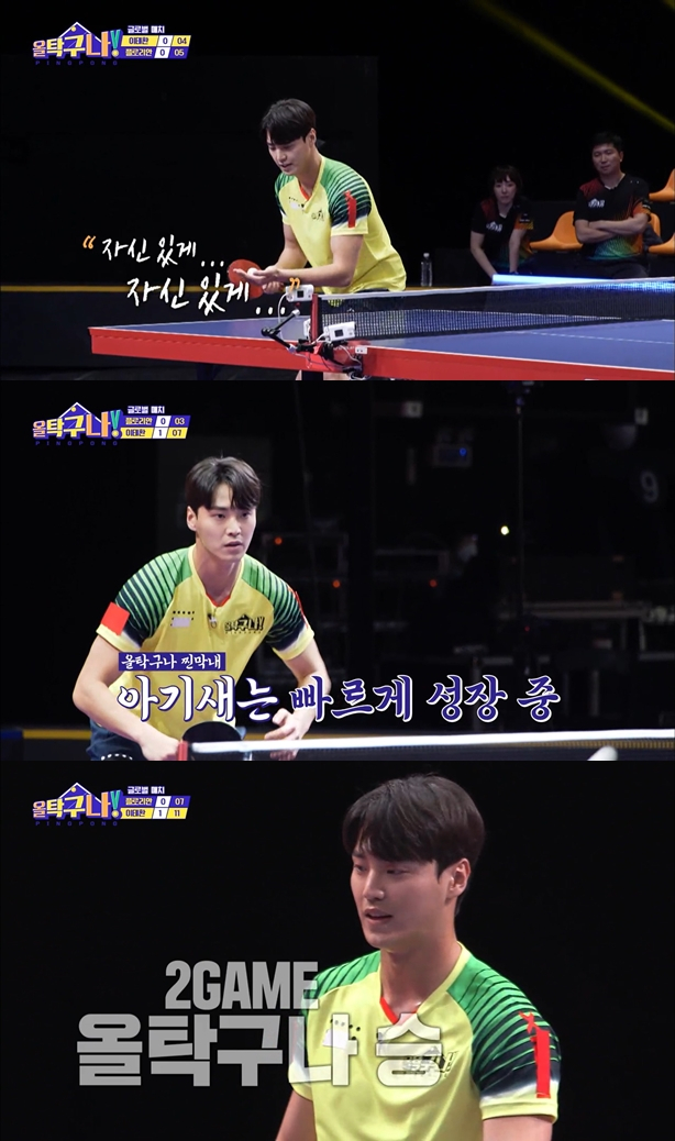 이날 방송에 이태환은 플로리안과 대결에 있어서 초반부터 기세에 눌리지 않고 자신감 있게 침착한 플레이를 보여줬다. 고도의 집중력을 발휘해 연달아 다른 방향으로 에지가 나오는가 하면 짧게 떨어지는 바운드로 득점에 성공하는 등 조금씩 발전해나가는 모습으로 팀원들은 물론 시청들까지 응원하게 만들었다.