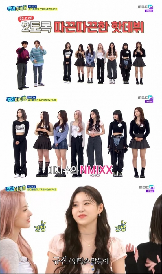 이날 MC 황광희는 "2022년 2월 22일에 데뷔했다. NMIXX에 대한 정보가 많이 없다. JYP 막내 라인이 핫하다"며 막내 규진에게 데뷔 소감을 물었다.