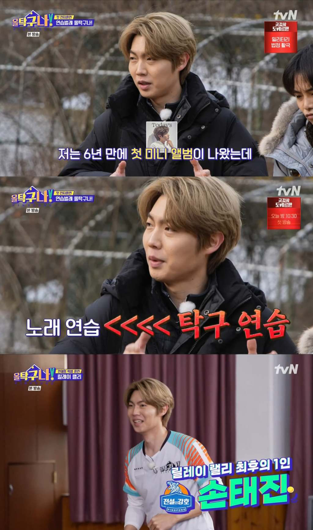 손태진은 지난 28일 방송된 tvN 예능 프로그램 '올 탁구나!'에서 첫 전지훈련에 임하며 두 번째 라이벌 매치에 출격했다.