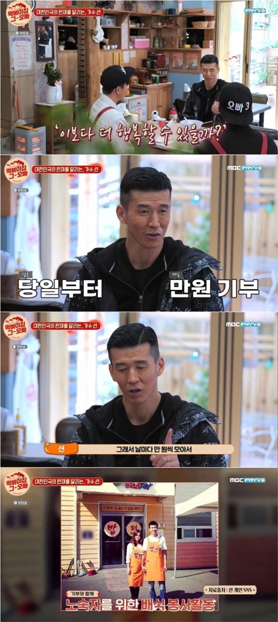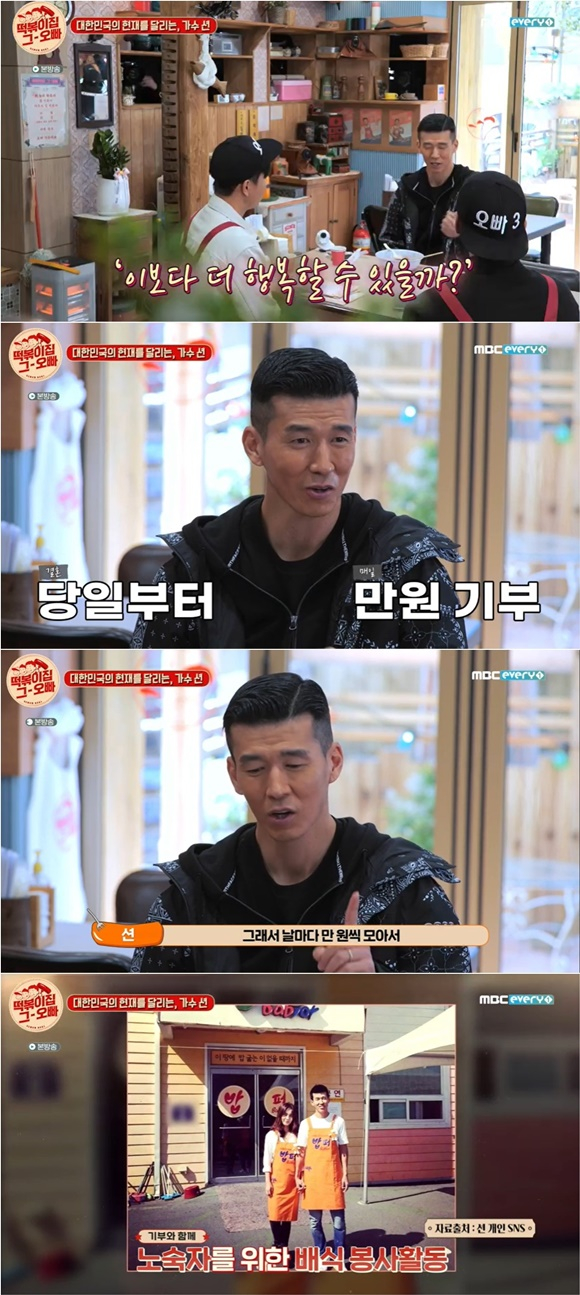1일 오후 방송된 MBC에브리원 예능프로그램 '떡볶이집 그 오빠'에서 션이 기부를 하게 된 이유를 털어놨다.