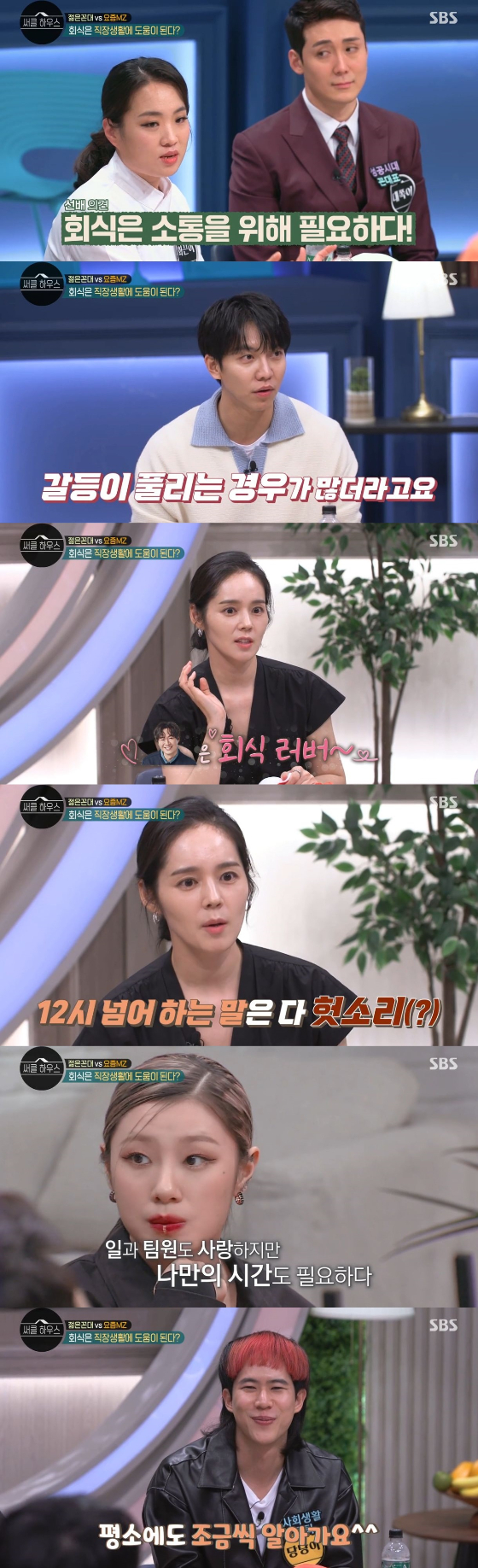 오은영은 "제가 봤을 때 MZ세대는 밥을 사주는 게 싫은 것도 아니고 친목을 하는 게 싫은 것도 아닌 것 같다. 그냥 '그 친목을 도모하기 위해 왜 내 개인 시간을 써야 하나요'인 거 같다. 업무 시간 중 점심시간을 이용해서 하면 될 것 같다"고 제안했다.