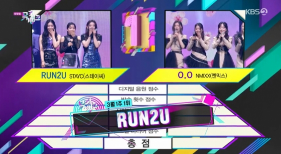 이날 1위 후보로는 스테이씨의 '런투유(RUN2U)'와 엔믹스의 'O.O'였다. 풋풋한 신인 그룹의 대격돌이라 더욱 1위 트로피의 주인은 누구일지 주목됐다.