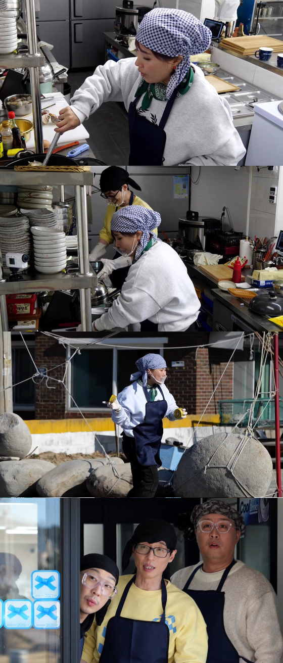 5일 오후 방송되는 MBC 예능 '놀면 뭐하니?'에서는 유재석, 정준하, 하하, 신봉선이 '만나상회' 식당 첫 영업을 시작하는 가운데, 신봉선(미나)이 주방 메인 셰프로 등극하는 모습이 그려진다.